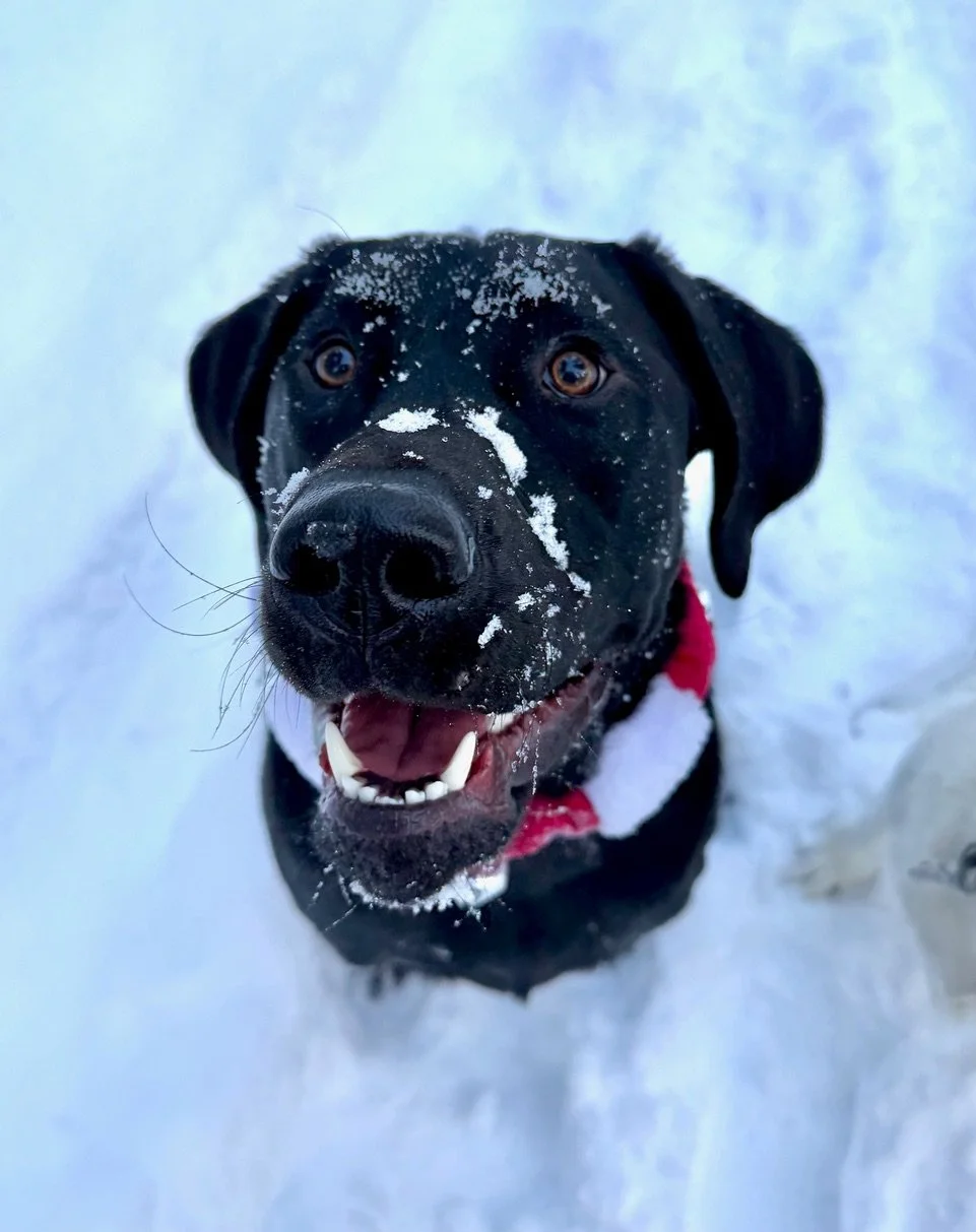 First things first: Hank. Super-sized black lab pup. He loves snow and jingle bell necklaces.